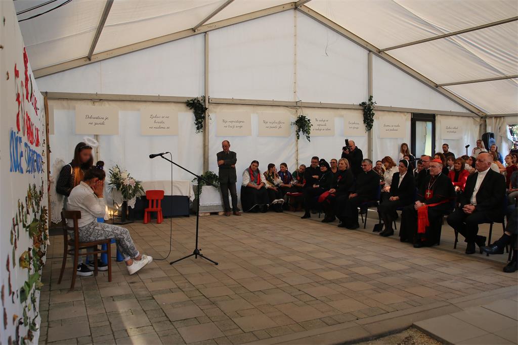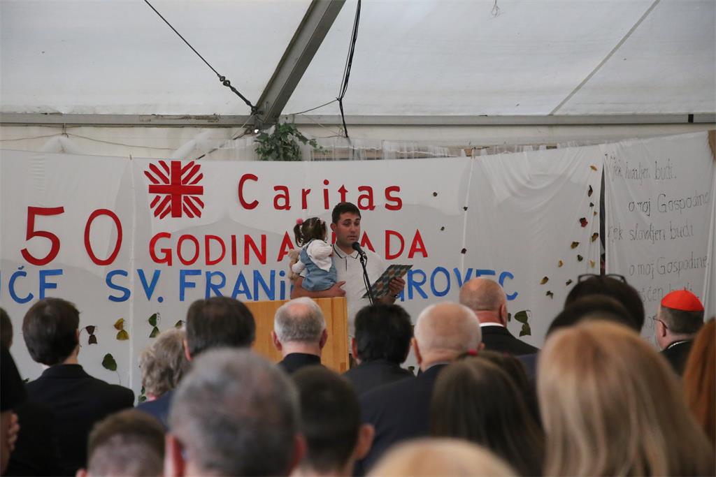 Na početku programa okupljenima se obratila ravnateljica Caritasa s. Jelena Lončar. "Radosna sam što vas mogu pozdraviti okupljene danas u prvom od domova Caritasa Zagrebačke nadbiskupije Kući za djecu bez odgovarajuće roditeljske skrbi, Kući sv. Franje. Potreba izgradnje većeg doma za skrb o korisnicima pokazala se već nakon što je Caritas 1969. počeo u prostorijama Nadbiskupskog duhovnog stola skrbiti o napuštenoj djeci", podsjetila je s. Jelena Lončar i dodala kako je izgradnja Kuće sv. Franje započela 1971. godine, a dovršena je u jesen 1972.