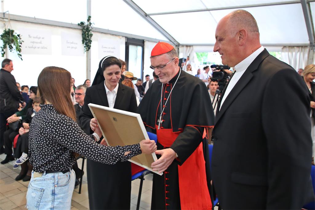 Čestitku povodom srebrnog jubileja nadbiskupske službe kardinalu Bozaniću uputila je korisnica Caritasove Kuće sv. Franje, a Kardinal je primio prigodne darove od korisnika iz Kuće Brezovica, Prihvatilišta za beskućnike te Kuće sv. Franje.
