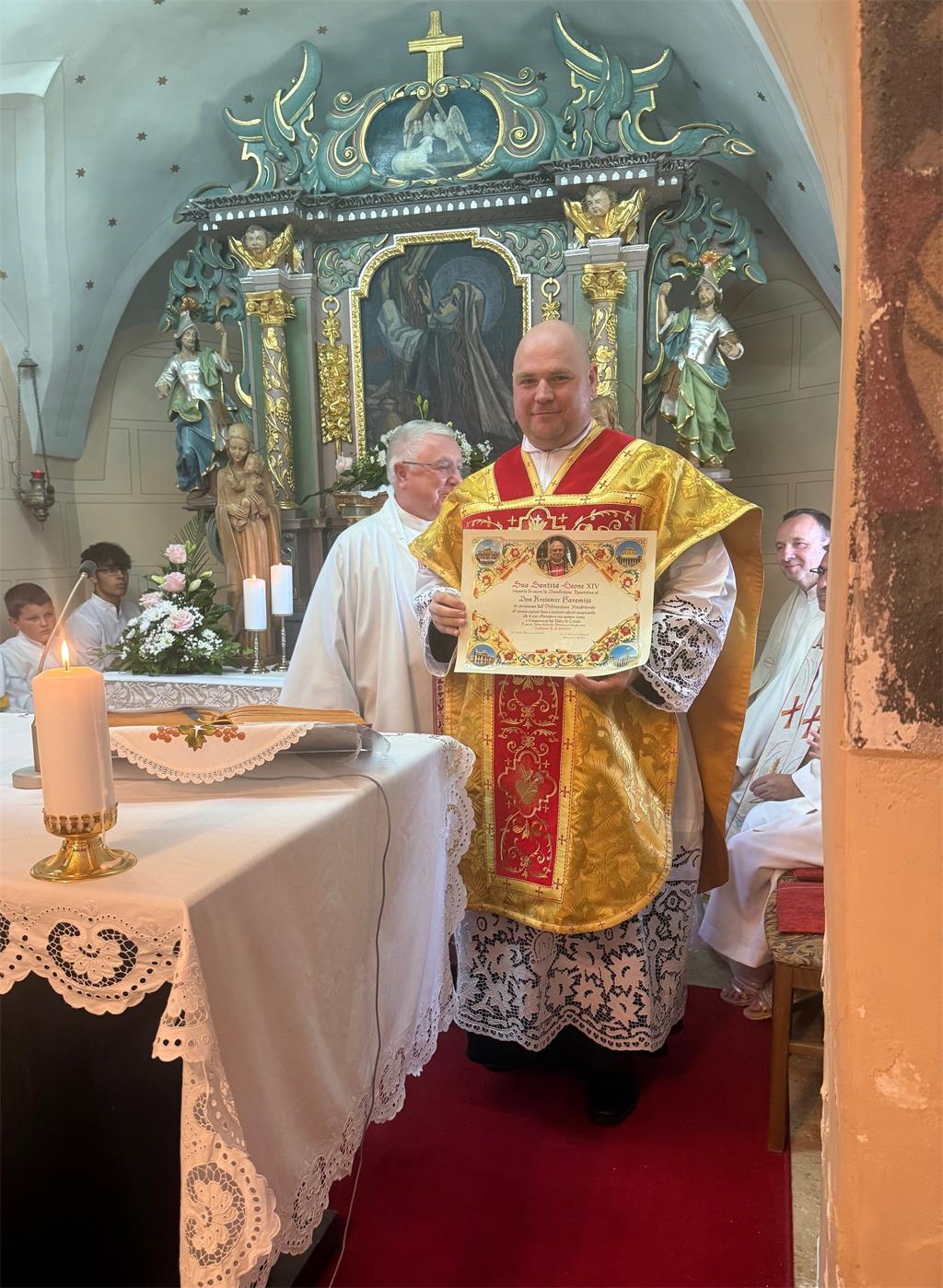 Na samome kraju preč. Vučak zamolio je mons. Jurja Batelju da svečano pročita i s talijanskog prevede blagoslove pape Lava XIV. Jubilarci Nikola i Bara Mahovlić dobili su svečani blagoslov pape Lava XIV. za proslavu svojih 70 godina braka, a mladomisnik vlč. Haramija dobio je Papin blagoslov za svećeničko ređenje i proslavu svoje mlade mise.