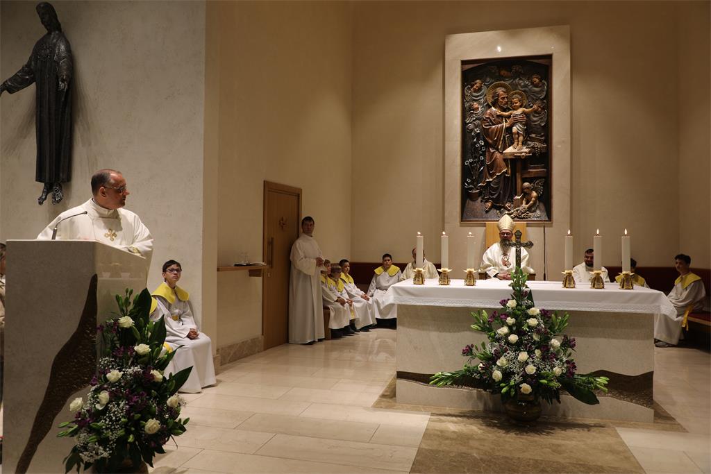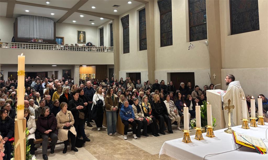 Na početku homilije vladika Stipić pozdravio je sve okupljene župljane, na čelu sa župnikom, hodočasnike, a osobito članove Neokatekumenskog puta s kojima je povezan još od ranijih svećeničkih dana. Čestitao je svim vjernicima župnu svetkovinu svetoga Josipa ističući tog tihog čuvara Svete Obitelji u kojemu se ujedinjuju zapadna - latinska Crkva i istočna - bizantska.