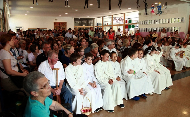 Na svetkovinu Presvetog Tijela i Krvi Kristove – Tijelovo, 31. svibnja zaprešićki dekan Ivan Frkonja i upravitelj župe sv. Petra apostola u Zaprešiću predvodio je euharistijsko slavlje u prepunoj crkvi sv. Ivana Krstitelja. Uvodeći u misno slavlje župnik Frkonja je rekao da se danas s vjernicima diljem svijeta želimo zaustaviti pred velikim otajstvom Isusove trajne euharistijske prisutnosti među nama i njegove ljubavi za nas. Kazao je kako i ovom euharistijskom slavlju i procesijom želimo javno posvjedočiti tko je nama Isus Krist koji nas na svakoj svetoj misi okuplja u zajedništvo vjere, nade i ljubavi. Prigodnu propovijed uputio je vjernicima župni vikar vlč. Marinko Golek govoreći o čovjeku današnjice koji ne primjećuje veliku ljubav euharistijskog Krista, istaknuvši da Krist ostaje osamljen u svetohraništima crkava, da rijetko nalazi duše kojima se može pritjeloviti i koje se njemu žele pritjeloviti.