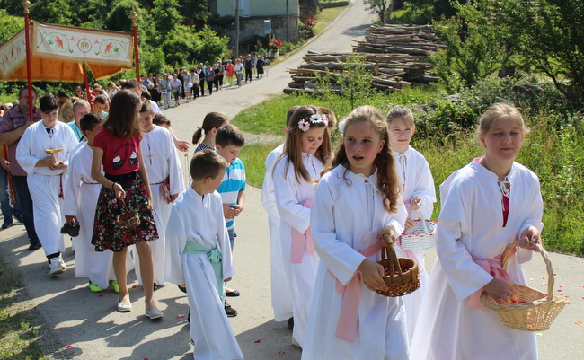 Razmišljajući o Božjoj riječi i poticajima župnika u propovijedi o ovom velikom blagdanu čovjek se osjeća doista sićušnim i malenim pred Gospodinom. Kako mu iskazati hvalu za sve što je za nas učinio? Čime mu uzvratiti? Mnogi naši preci, trapeći se i radeći na ovim brdima, a bez nekog obrazovanja, osjećali su i znali da je Gospodinu treba iskazivati čast i slavu, jer njemu jedinom to dolikuje, pronosili su Isusa kroz svoju župu i slavili ga. Danas, u modernom vremenu, priključujemo se i mi tradiciji naših starih, postajemo dio onih koji slave Gospodina i koji se stavljaju pod njegovu zaštitu. Imamo jamstvo da nas neće ostaviti i da je s nama kao što i pjevamo „Ja sam s vama, Isus veli, s nama ostat žarko želi...“