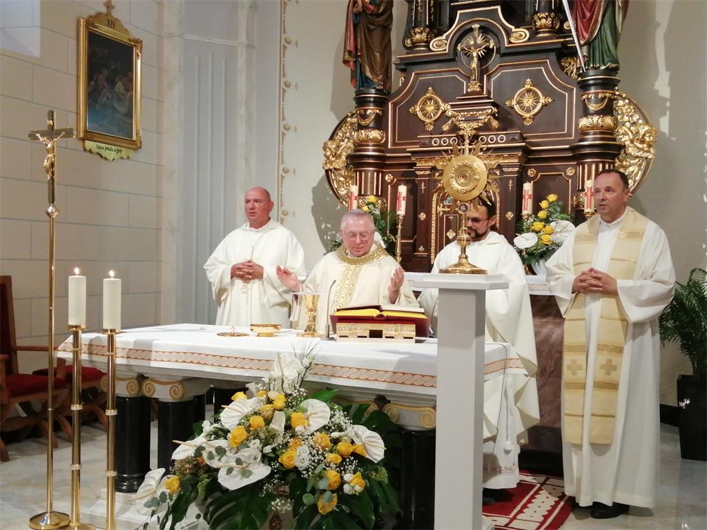 Na početku euharistije župnik domaćin vlč. Darko Pužin biranim je riječima pozdravio predslavitelja, zahvalio mu na dolasku i uime župne zajednice uputio srdačne čestitke prigodom ovogodišnje zlatomisničke obljetnice.
