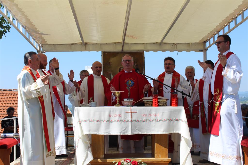 Mons. Sente obratio se mnoštvu vjernika: „Zaista je lijepo ovdje, na ovom brdu... Osluškujući Božju riječ osjećam da je pisana baš za nas, za ovaj trenutak. Apostol Pavao piše o vjeri,