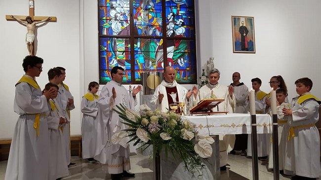 Središnje je euharistijsko slavlje predslavio ravnatelj Hrvatskog Caritasa i ravnatelj Hrvatske katoličke mreže, mons. Fabijan Svalina uz koncelebraciju župnika Ivice Šturlića, te bivšeg župnika Marjana Pavlenića. U svojoj je propovijedi mons. Svalina istaknuo kako je Isus prije nego li je uzašao na nebo svojim apostolima uputio riječi ohrabrenja i poslanja, te da iste riječi Isus govori i svakome od nas.