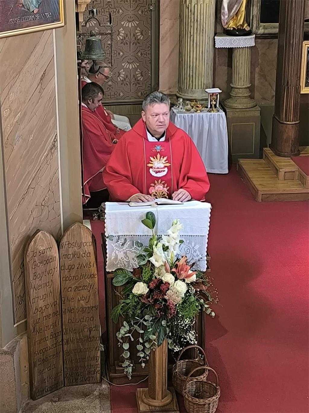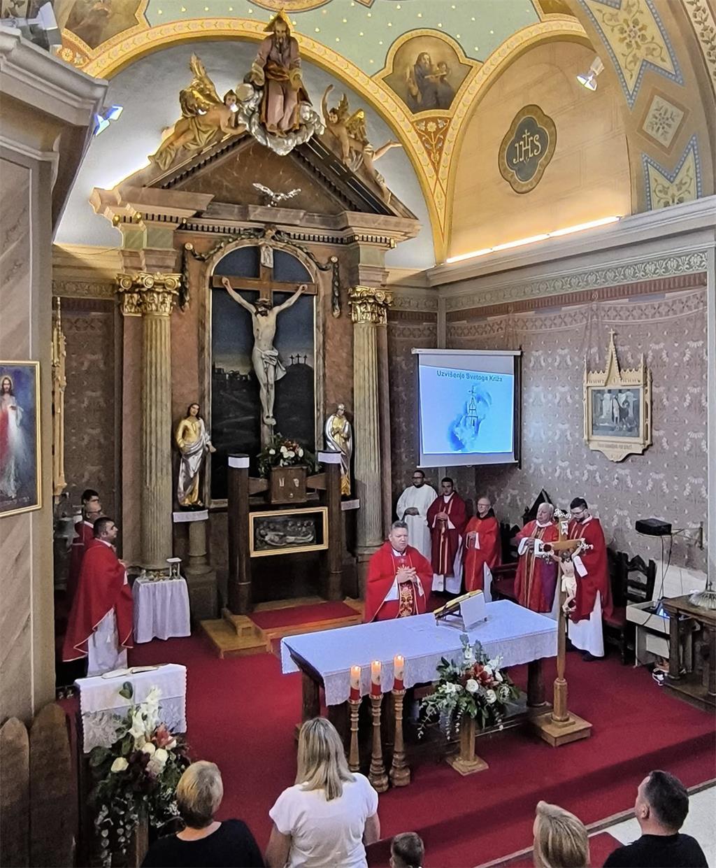 U homiliji preč. Šalković istaknuo je: "Krist uzvišen na križu iznad glavnog oltara podsjeća župljane na Kalvariju, Veliki petak, Isusovu muku i smrt. Za nas vjernike Kristovo uzdignuće na križ čin je spasenja i otkupljenja. Tako je križ mjesto pobjede, a ne poraza. Na križu nam je Bog otvorio svoje probodeno srce i pokazao se kao neizmjerna ljubav."