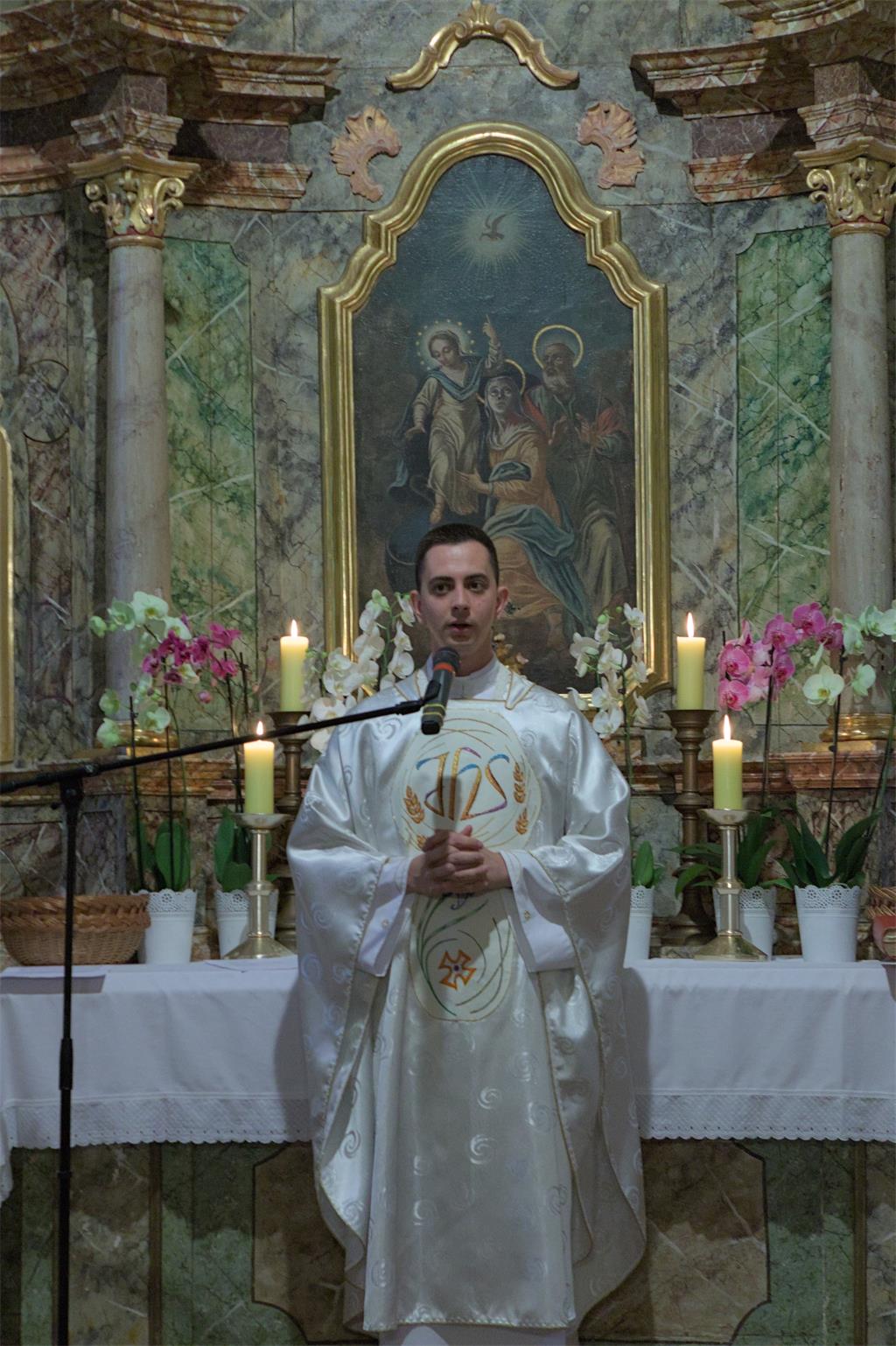 Večernje misno slavlje predvodio je mladomisnik vlč. Kristijan Kolonić, koji je svoj đakonski praktikum vršio u Župi sv. Anastazije mučenice u Samoboru.
