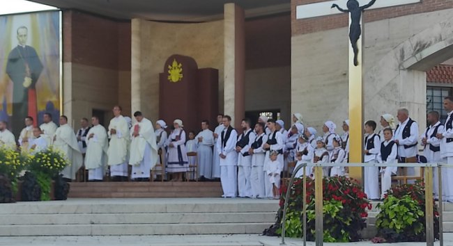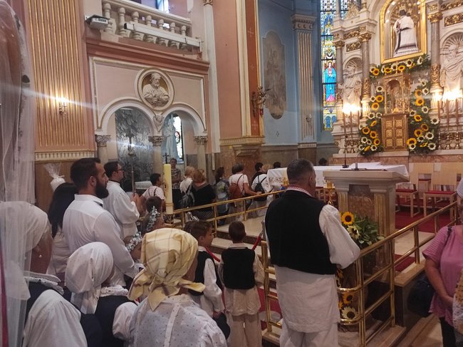 Slijedila je euharistija u Crkvi na otvorenom bl. Alojzija Stepinca. Propovijedao je pavlin o. Mate Kolak uz koncelebraciju naših samoborskih svećenika i rektora Matoševića. Oko oltara bio je „vijenac“ vjernika svih naraštaja obučenih u narodne nošnje. U puku su bile brojne vjerničke obitelji našega grada, oni koji znaju izraziti zahvalnost za svoje živote i moliti Mariju da „