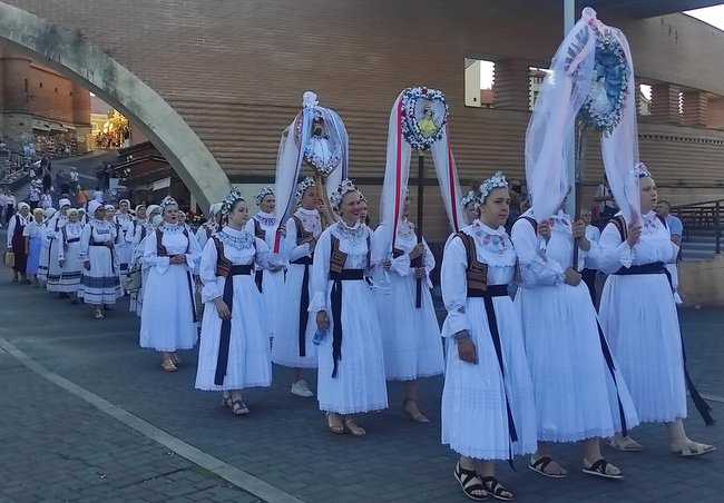tronušima koje su, prema tradiciji, nosile djevojke kojima je ove godine pripala čast biti predstavnicama svojih župa. Zavjetnu svijeću Majci Božjoj Bistričkoj, koju su kasnije prinijeli na oltar, nosili su naizmjence samoborska gradonačelnica Petra Škrobot i dogradonačelnik Petar Burić.