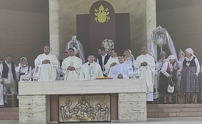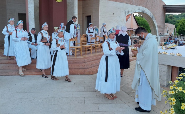 U procesiji su neizostavni tronuši koje nose djevojke u svečanim narodnim nošnjama, vjernici u svojim narodnim nošnjama i nošnjama pojedinih vjerničkih skupina. Slijedilo je klanjanje pred Presvetim, euharistija i Put svjetla te oproštajna procesija u bazilici. Svetu misu u svetištu predvodio je rektor preč. Domagoj Matošević.