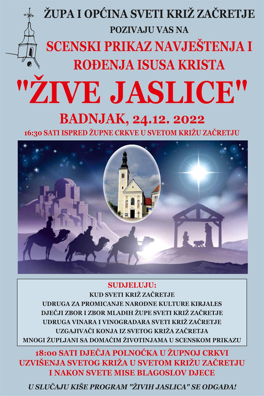 Scenski prikaz navještenja i rođenja Isusa Krista "Žive jaslice" ispred župne crkve u Svetom Križu Začretju