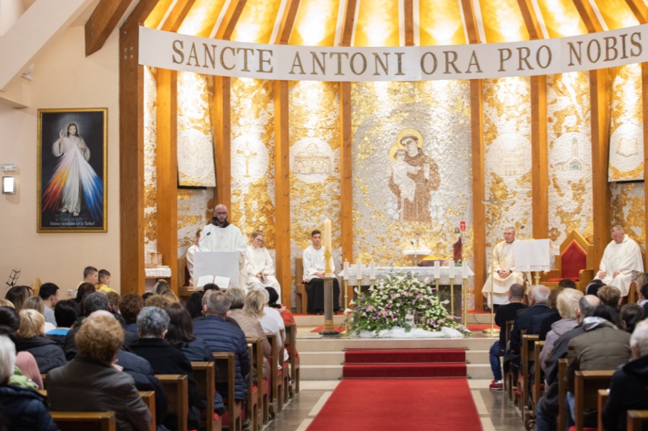 To je značilo kako se pobijeđene tuđe sile više neće vraćati u njezin život. To je značilo da svijet, koliko god bio brutalan, nema zadnju riječ. To je značilo da Onaj koji je meni vratio život, a znamo tko je bila Marija Magdalena, za nju znači kako smrt nema zadnju riječ. U tom je trenutku vrlo zanimljivo da joj Isus kaže da se ne zadržava za njega, za grob, za svoju ideju i predodžbu već pusti neka život ide!”, naglasio je fra Rukavina i poručio okupljenim štovateljima sv. Antuna Padovanskoga da “nakon prepoznavanja Isus Mariji daje zadatak koji Gospodin daje i nama danas. Susret s Uskrslim uvijek je zadatak. Što je to što mi moramo činiti u ovom svijetu? Njezin je zadatak bio da ode i kaže učenicima što se dogodilo, a naš? Prva je susrela Uskrsloga i bila sigurna da je Uskrsli tu. Mi smo sada na svetoj misi, slavili smo ovih dana svečano Uskrs. Jesmo li mi svjesni i sigurni da je Uskrsli ovdje s nama? Vidi li se to na nama, našim licima, gestama, aktivnom sudjelovanju i ono najvažnije, hoće li se to vidjeti kada izađemo iz crkve nakon mise, pa i s onima koji nam idu na živce, koji nas mrze. Puštam to sebi i vama na razmišljanje. Neka nas Uskrsli Gospodin prati na našem životnom putu i zagovara sv. Antun Padovanski!”