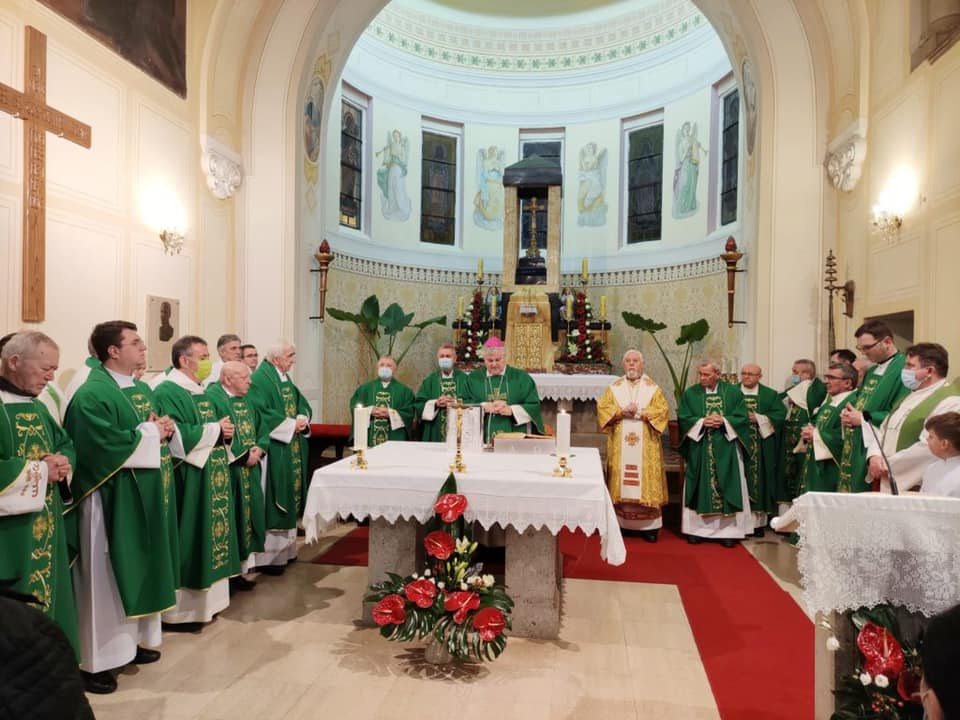 Umirovljeni varaždinski biskup Josip Mrzljak i sisački biskup Vlado Košić proslavili su obljetnicu biskupskog ređenja misom u nedjelju 6. veljače, šestog dana devetnice za Stepinčevo, u crkvi Presvetog Trojstva u Krašiću.