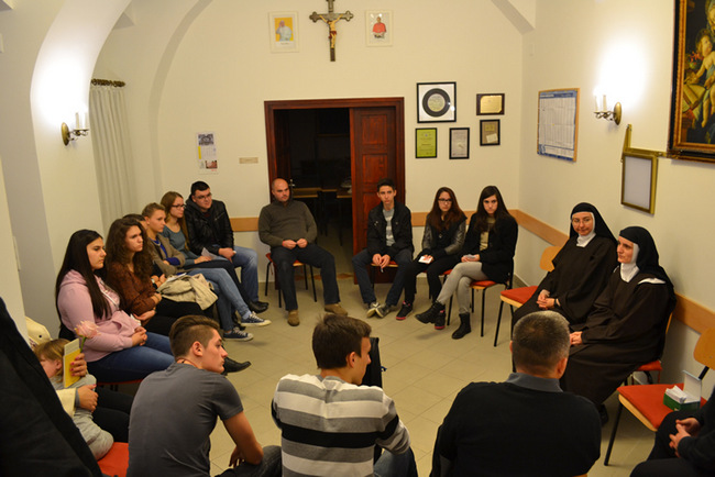 Nakon svete mise uslijedilo je i druženje s mladima župe. Sestre su pričale zanimljivosti iz svog života i života u samostanu te kako su osjetile Božji poziv i odlučile se za redovništvo. Dan u Karmelu počinje u 5.30 sati nakon čega slijedi jutarnja molitva, meditacija, a u 7.30 sati je sv. misa.