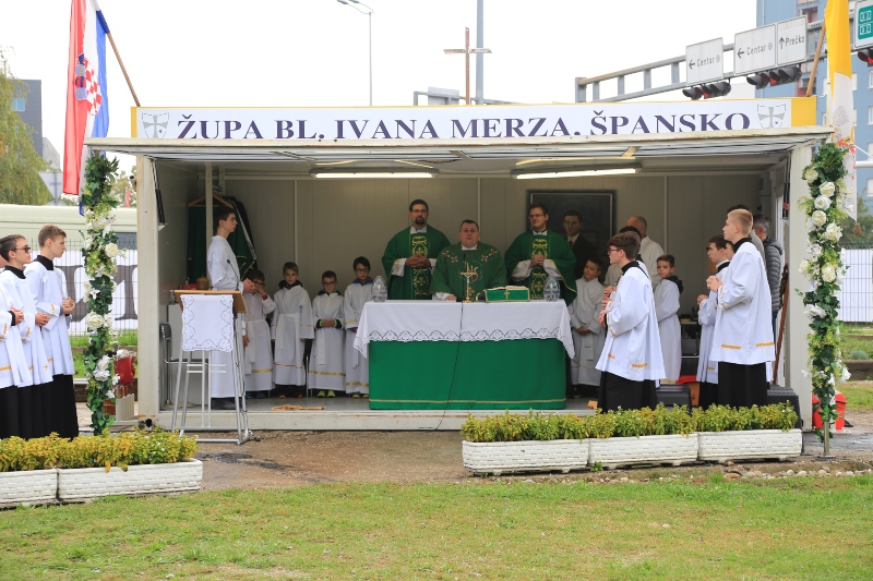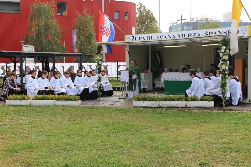 Na poziv upravitelja župe vlč. Marka Čolaka koncelebrirano misno slavlje na župnoj livadi, gdje župljani slave svete mise u nedostatku župne crkve, predvodio je preč. Matija Pavlaković, rektor Međubiskupijskog sjemeništa i ravnatelj Papinskih misijskih djela u Zagrebačkoj nadbiskupiji, u zajedništvu s domaćim župnikom i vlč. Lukom Premelčem, duhovnikom šalatskog sjemeništa.