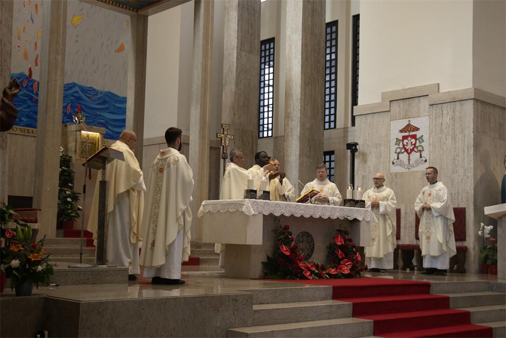 Te Deum akademske zajednice Hrvatskog katoličkog sveučilišta u ponedjeljak 9. lipnja 2025. Svečanu svetu misu kojom je akademska zajednica HKS-a zahvalila Bogu za obilje primljenih darova u akademskoj godini 2024./2025. predvodio je vlč. Odilon Singbo s Katedre za teologiju. Koncelebrirali su: rektor HKS-a preč. Željko Tanić, prorektor fra Ante Crnčević, generalni tajnik HBK preč. Krunoslav Novak, sveučilišni kapelan vlč. Branimir Jagodić, povjerenik Ureda za pastoral mladih vlč. Filip Šešek te profesori vlč. Jerko Valković i p. Ivica Musa, DI.