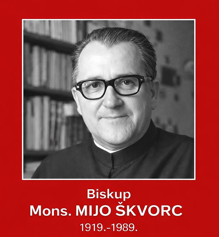Biskup Mijo Škvorc rođen je u Ruševcu kraj Križevaca 1919. g. Svoje osnovno i potom gimnazijsko obrazovanje stekao u sjemeništima u Zagrebu i Travniku. Teologiju studira u Zagrebu gdje je 1948. god. zaređen za svećenika. Kao profesor predaje na Filozofsko-teološkom institutu Družbe Isusove u Zagrebu i paralelno vrši uspješnu dušobrižničku službu za studente. Drži glasovite propovijedi u Bazilici Srca Isusova po čemu je postao poznat u cijeloj Hrvatskoj. Zbog tih propovijedi, a na temelju tzv. „verbalnoga delikta“, komunistički režim osudio ga je na dvije godine strogoga zatvora koje je proveo kao robijaš u Staroj Gradišci od 1956. do 1958. Duhovna veličina isusovca i potom biskupa Mije Škvorca najviše se očitovala u činjenici što se svojim čuvenim propovijedima, kao i spisima hrabro suprotstavljao materijalističkoj ideologiji komunizma.