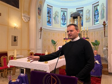 Pater Bayal predvodio je svetu misu uz koncelebraciju preč. Ivana Vučaka, upravitelja Župe Presvetog Trojstva, p. Filipa Vicića, superiora zajednice lazarista u Hrvatskoj i vlč. Anđelka Kataneca, povjerenika za pastoral migranta i turista Zagrebačke nadbiskupije.