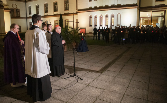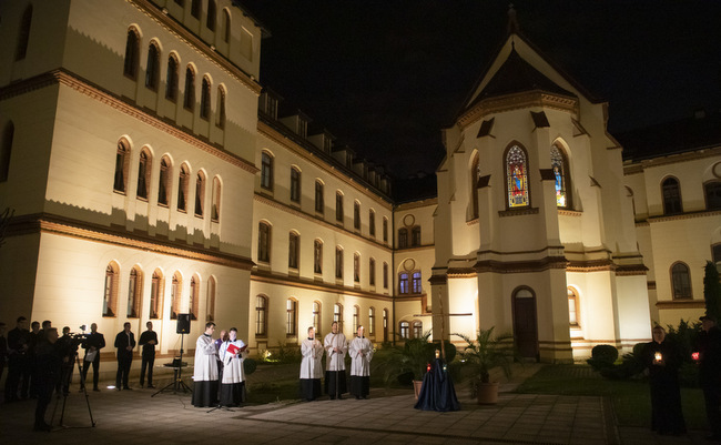 Molitvu u dvorištu Bogoslovije za Domovinu Hrvatsku, poginule branitelje, obitelji i mir u svijetu, sve pogođene raznim nedaćama, siromahe i svećenička i redovnička zvanja predvodio je vlč. Vlado Razum, duhovnik, uz asistenciju i pratnju bogoslovnog Okteta. Duhovnik je sve podsjetio poslije službe riječi i litanija Srcu Isusovu da danas u neovisnoj Republici Hrvatskoj nedostaje odgovornih, marljivih i samozatajnih osoba koje će biti spremne na žrtvu i odricanje. Potom je uslijedio kardinalov pastirski blagoslov naroda i paljenje lampaša za sve stradale ratne žrtve.