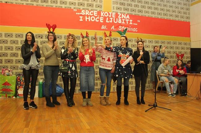 Prije podjele darova organizatorice ovogodišnje akcije - Marija, Katarina Monika, Mirjana, Slavica, Paula i još jedna Marija - otpjevale su prigodnu pjesmu za ovu priliku, koja opisuje njihovo nadahnuće: »U mome srcu živi nada / da ljubav sve pobjeđuje / u mome srcu ima mjesta za sve one / koji ljubav trebaju... «. Ubrzo se dvorana orila od pjesme, a na veseli ritam glazbene podloge poketni korisnici su plesali.