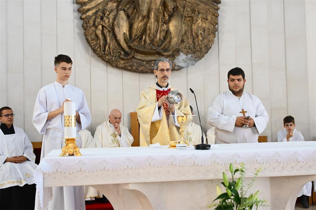 Propovijedao je fra Tomislav Glavnik, koji se osvrnuo na svetkovinu Presvetog Trojstva, istaknuvši kako se Trojstvo preslikava i na naš osobni život - u pozivu na vjerodostojnost u istini, žrtvi, djelima, ali i u ljubavi prema bližnjemu, što je ujedno i srž svećeničkog poslanja. Nakon što je Isus ustanovio svećenički red na Posljednjoj večeri, nastavio je fra Tomislav, on odlazi u Getsemanski vrt gdje se suočava s tamom, duhovnom borbom, razočaranjem i izdajom - ali i s konačnim uskrsnućem.