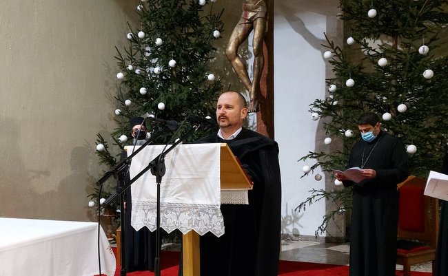 Predstavnik Reformirane kršćanske kalvinske Crkve u Republici Hrvatskoj biskup Peter Sen u nagovoru se referirao na potres koji je sve oko nas uzrmao te je okupljene upitao jesu li u svojoj duši isto prodrhtali. „Imamo li bogobojaznost da bismo uistinu živjeli onim putem, za koji svi vjerujemo kada Isus kaže da je