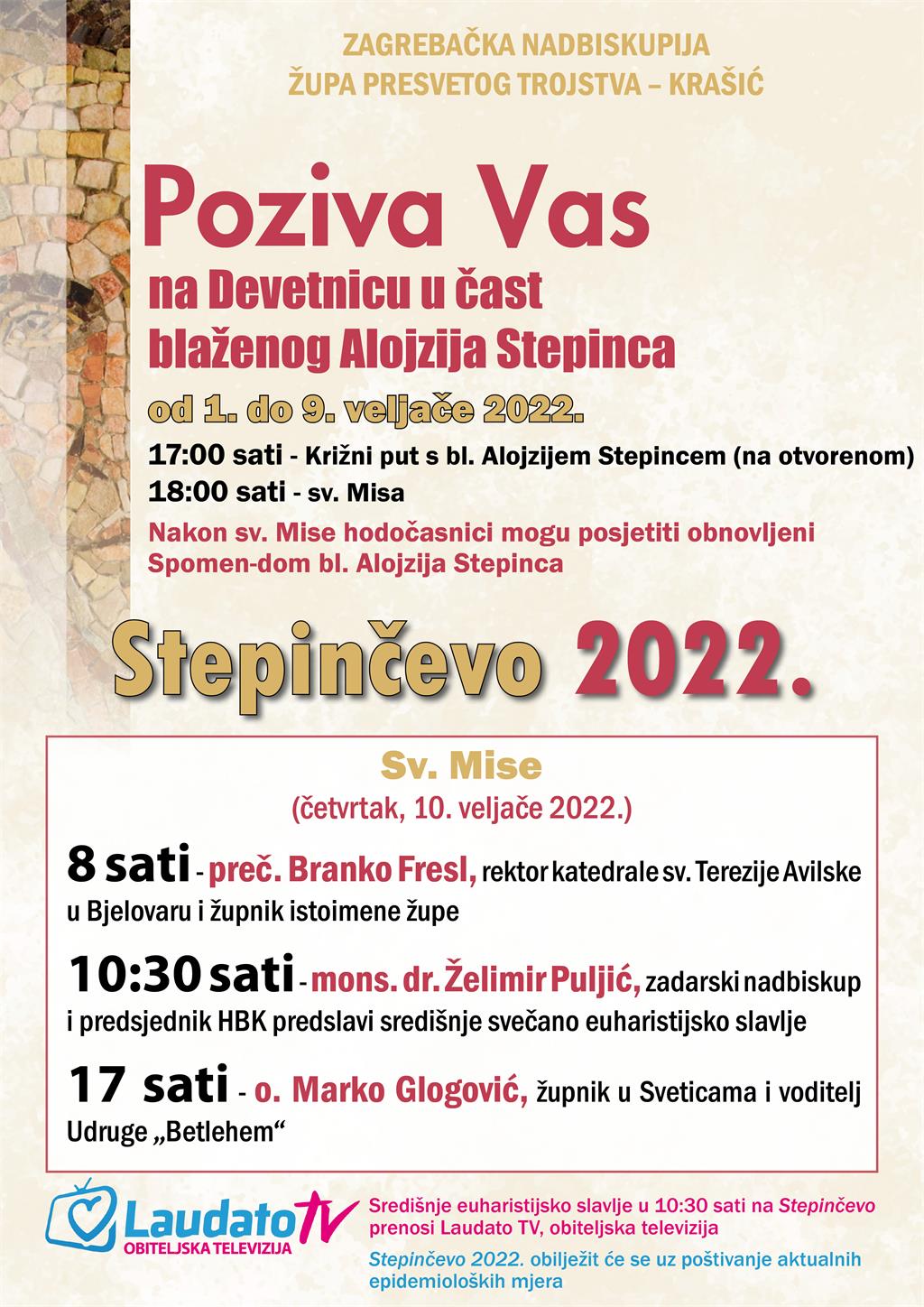 Oni koji u pandemijskim okolnostima nisu u mogućnosti doći u Krašić, dio Devetnice, promociju knjige i sâmo Stepinčevo mogu pratiti i na Laudato obiteljskoj televiziji.