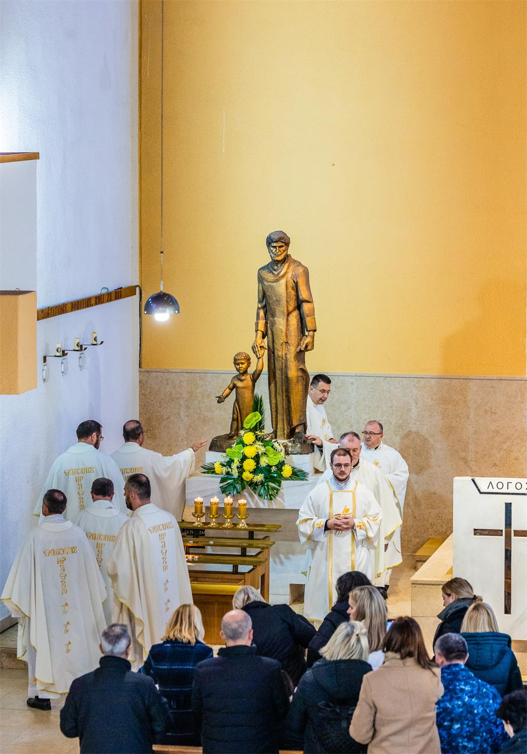 Misno je slavlje predvodio don Martin Jadreško, župnik Župe svetog Josipa u Zadru i duhovnik devet molitvenih vjenčića u svojoj župi. Koncelebrirali su duhovnici molitvenih vjenčića vlč. Branko Koretić župnik u Ivanić-Gradu; vlč. Mirko Vukšić, župnik u Labinu; vlč. Antun Kolić, župnik na Baniji u Karlovcu; fra Marko Neretljak, župnik u Belišću; fra Siniša Pucić, župnik vikar u Karlovcu; don Josip Kaić, župnik Župe svetog Josipa u Rijeci, te vlč. Zlatko Golubić ispovjednik i mons. Antun Sente, rektor Josipova svetišta. Tumačeći naviješteno Evanđelje u kojem Isus, prezentirajući udovicu koja ne posustaje od nepoštena suca tražiti pravdu, tumači kako valja svagda moliti i negda ne sustati.