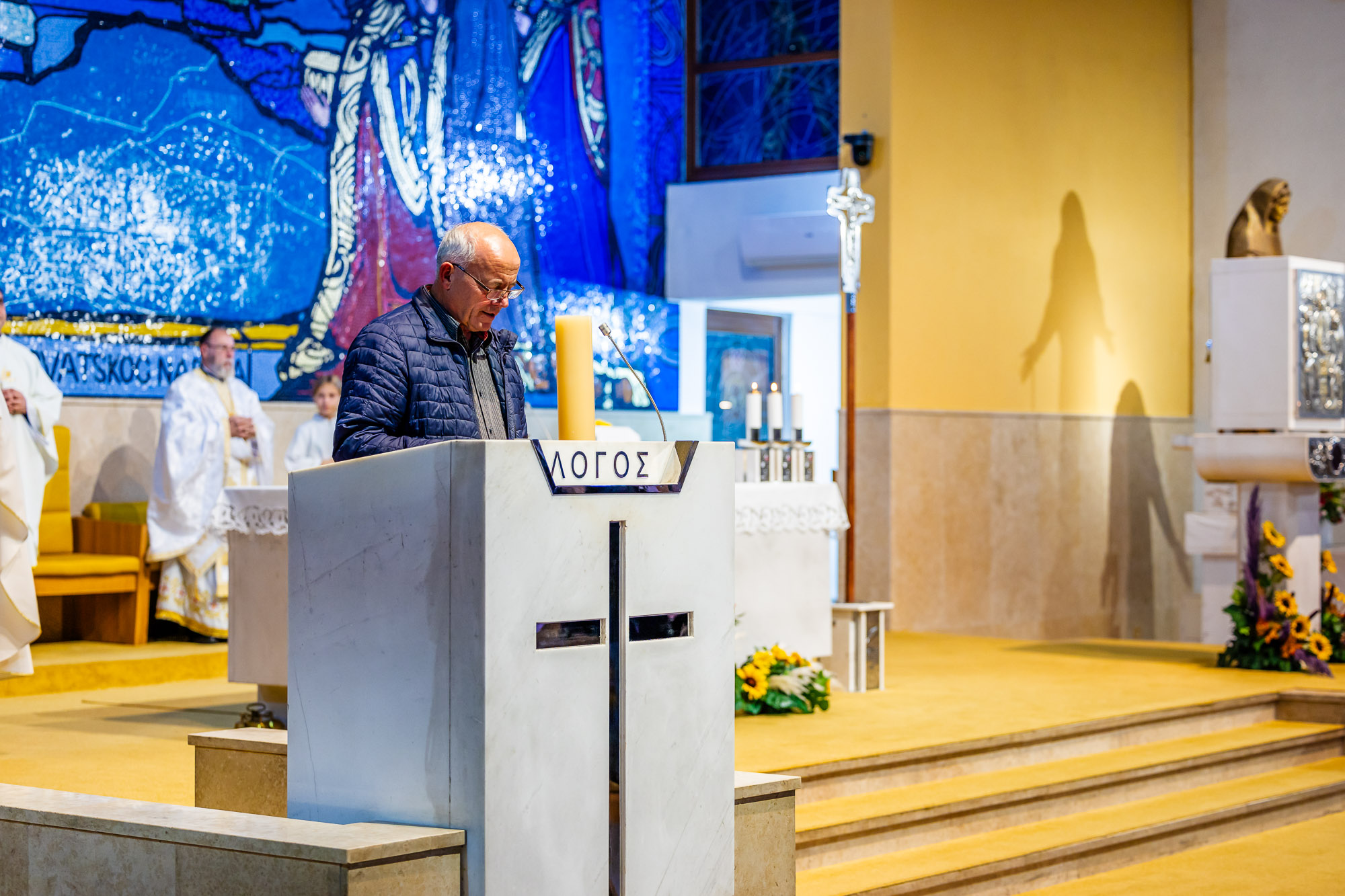 Predvoditelj misnog slavlja preč. Pavlaković, prisjećajući se mons. Radanovića, preč. Alojzija Burje i svih časnih sestara, u ime s. Ivane Margarin, vlč. Marka Vukovića, protojereja stavrofora Željka Pajića i svoje osobno zahvalio je mons. Senteu na pozivu "da danas po prvi put budemo ovako zajedno i da sa svojima doma ovdje slavimo svetu misu, moleći da ponovo Gospodin pogleda na ovu župnu zajednicu i možda nekoga već od ovih malih pozove da ga izbliza slijedi u svećeništvu ili redovništvu".