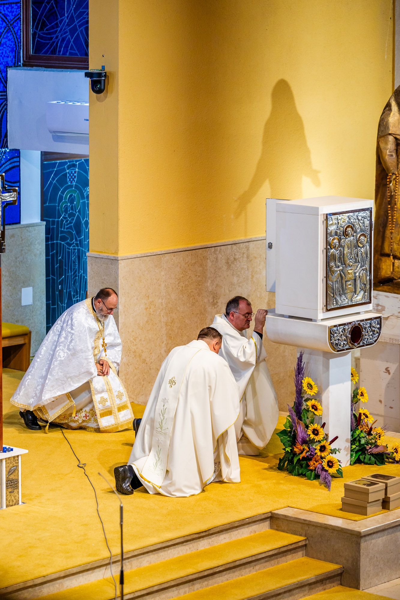 Misno slavlje u srijedu 9. listopada predvodio je preč. Matija Pavlaković, rektor Međubiskupijskog sjemeništa u Zagrebu. Koncelebrirao je protojerej stavrofor Željko Pajić, župnik grkokatoličke župe Uzvišenja Svetog Križa u Karlovcu, propovijedao je vlč. mr. Marko Vuković, profesor pastoralne teologije na Katoličkom bogoslovnom fakultetu Sveučilišta u Zagrebu, a vjeru je svjedočila s. Ivana Margarin, FDC, Nacionalna ravnateljica Papinskih misijskih djela u Republici Hrvatskoj. Sve četvero povezani su s Nacionalnim svetištem svetog Josipa u Karlovcu, te su sve četvero vjeroučenici mons. Marijana Radanovića, dugogodišnjeg dubovačkog župnika.