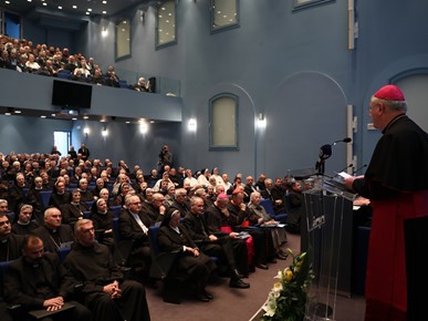 Potom je pozdrav je uputio splitsko-makarski nadbiskup i predsjednik Vijeća za ustanove posvećenog života i družbe apostolskog života Hrvatske biskupske konferencije mons. Zdenko Križić. Istaknuo je kako broj redovnika i redovnica u Europi, tako i u Hrvatskoj, pada. Podsjetio je na riječi sv. pape Ivana Pavla II. koji je kazao kako se "pravi poraz posvećenog života ne sastoji u brojnom opadanju, nego u nedostatku duhovnog pristajanja uz Gospodina i vlastito zvanje i poslanje."
