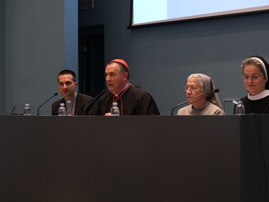 Susret ženskih i muških redovničkih zajednica u Hrvatskoj s proprefektom Dikasterija za ustanove posvećenog života i družbe apostolskog života kardinalom Ángelom Fernándezom Artimeom i podtajnicom s. Carmen Ros Nortes održao se u srijedu 28. svibnja u dvorani "Vijenac" Nadbiskupijskoga pastoralnog instituta u Zagrebu.