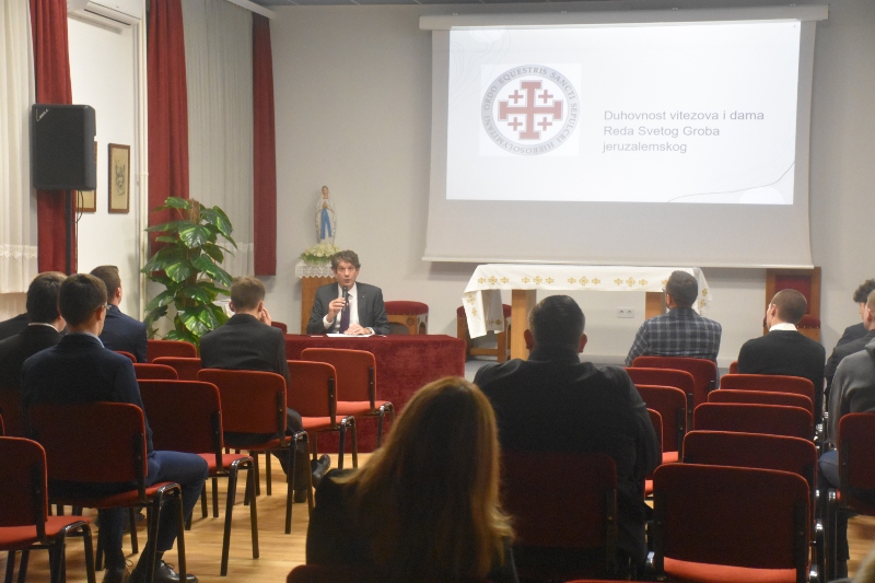 Vlč. dr. Anđelo Maly govorio je o poslanju Viteškog reda Svetog groba jeruzalemskog. ''Poslanje je, prije svega, duhovne naravi, a onda je važno i ono drugo - pomoć opstanku kršćana u Svetoj Zemlji. Kršćani danas čine manje od 2% stanovništva u Svetoj Zemlji. Red im je moralna potpora, ali i financira određene projekte: jaslice, domove, škole, izgradnju i obnovu crkava te financira i teološke studije bogoslovima koji će jednoga dana postati svećenici", objasnio je dr. Maly.
