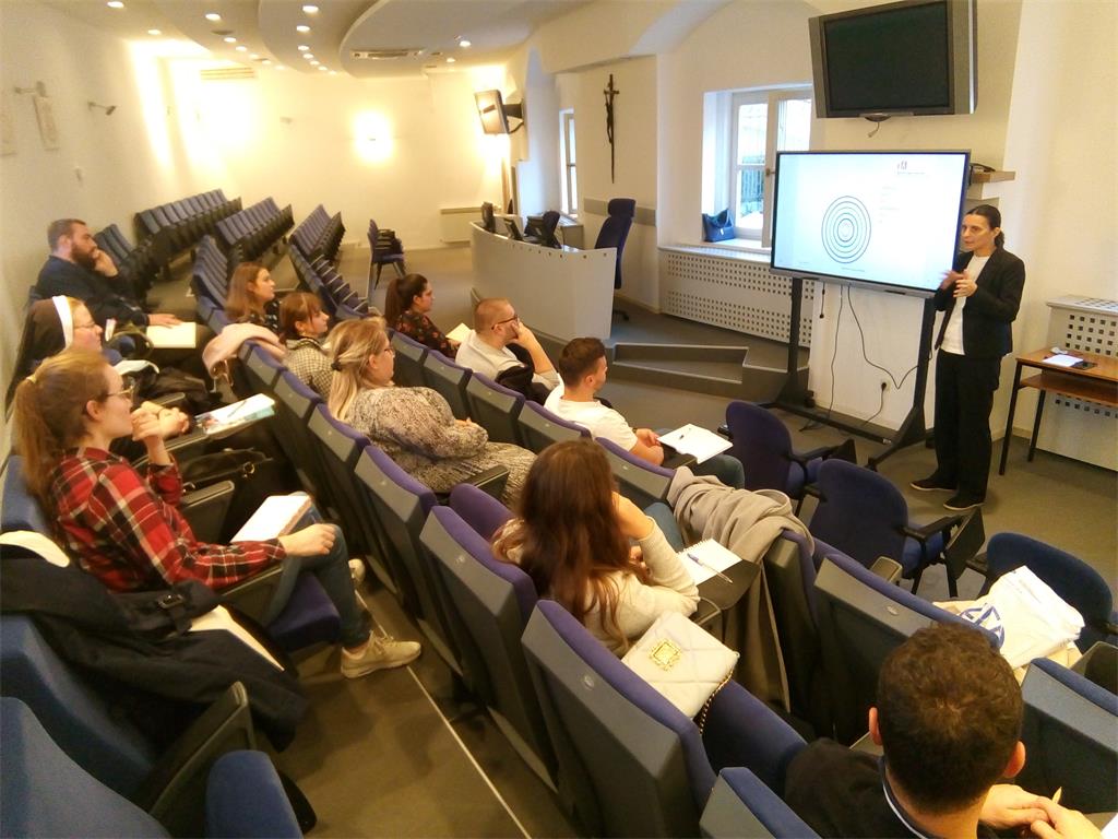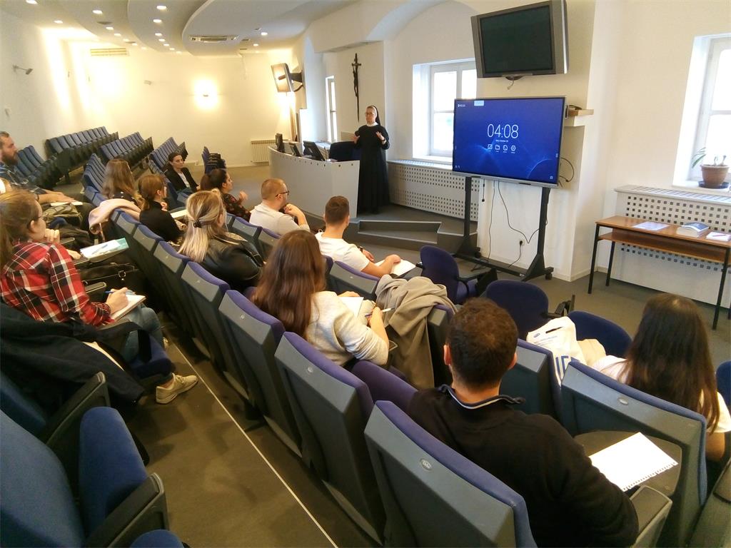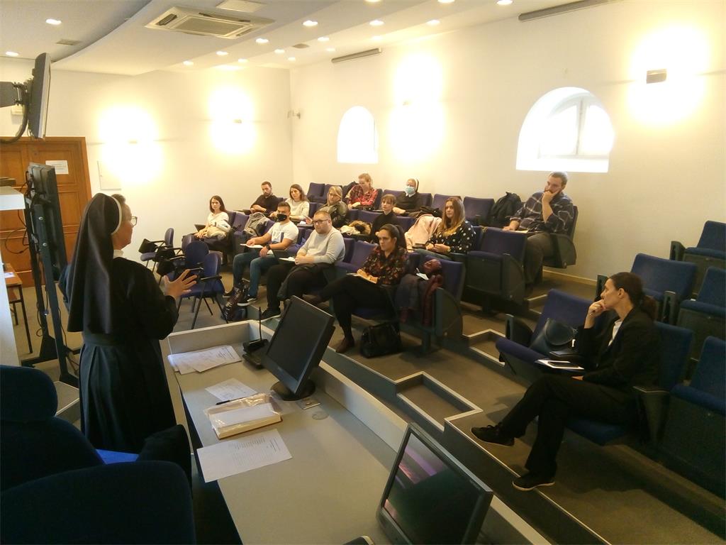 Vjeroučitelje je pozdravila i u svrhu susreta uvela prof. dr. sc. Blaženka s. Valentina Mandarić, predstojnica Ureda za vjeronauk. Ona je pojasnila specifičnu narav vjeroučiteljskog poziva te je govorila o ulozi Ureda za vjeronauk, kao i ulozi Ministarstva znanosti i obrazovanja, te pravima i dužnostima s kojima svaki vjeroučitelj treba biti upoznat u svom, osobito početničkom, radu. Predstavila je djelovanje Ureda za vjeronauk u školi i njegove djelatnice pa je riječ prepustila višoj savjetnici u Agenciji za odgoj i obrazovanje mr. sc. Gordani Barudžiji.