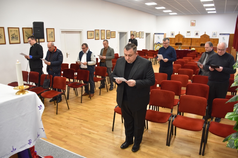 Okupljenim župnicima potom se obratio i gost susreta preč. Vlado Razum, rektor samostanske crkve Corpus Domini u Zagrebu i vanjski duhovnik u zagrebačkom Nadbiskupskom bogoslovnom sjemeništu, koji je održao poticajni korizmeni nagovor uz molitvu za darove mudrosti i jakosti Duha Svetoga u vremenu koje nam Gospodin daje.