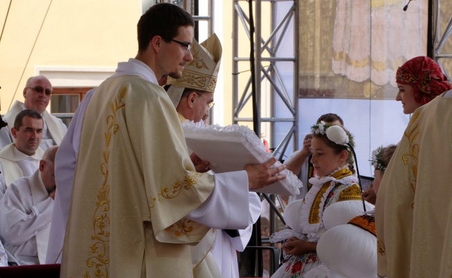 Kardinal Duka uručio je zatim zaslužnim pojedincima češkoga društvenoga i crkvenoga života medalje Češke biskupske konferencije, a vjernici u narodnim nošnjama predali su svim kardinalima, nad/biskupima i svećenicima na oltaru cvijeće.