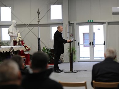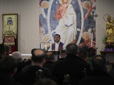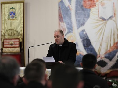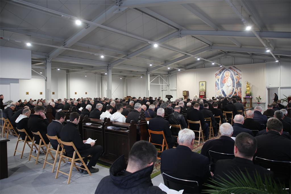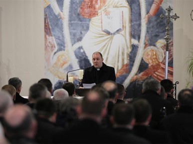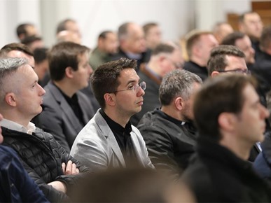 Nakon molitve Srednjeg časa koju je predvodio zagrebački nadbiskup mons. Dražen Kutleša, nagovor na temu "Svećenik - čovjek molitve koji odgaja za molitvu" održao je vlč. dr. Milan Dančuo, profesor liturgike na Katoličkom bogoslovnom fakultetu u Zagrebu i župni vikar u Župi Krista Kralja u Trnju.