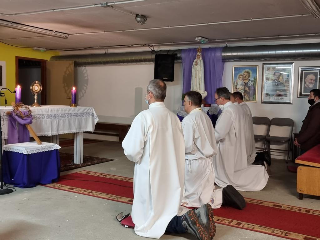 Nakon sv. mise molitva je nastavljena euharistijskim klanjanjem pred Presvetim Oltarskim Sakramentom. Za vrijeme euharistijskog klanjanja kroz razmatranja „blaženstava na gori“ vjernici su iskusili bratsku bliskost s onima koji teško trpe uslijed ratnih razaranja, te ujedno doživjeli nadu i pouzdanje evanđeoske poruke.