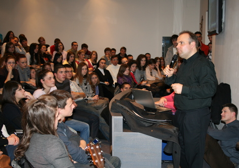 Dvjestotinjak srednjoškolaca i maturanata grada Zagreba ispunilo je dvoranu Nadbiskupijskog pastoralnog instituta na mjesečnom susretu održanom u četvrtak, 20. siječnja. Nakon što su zadnja dva puta gosti bili poznate osobe iz javnog života koji su posvjedočili o svojem življenju vjere, ovog četvrtka mlade je oduševilo izlaganje studentskog kapelana don Damira Stojića o teologiji tijela.