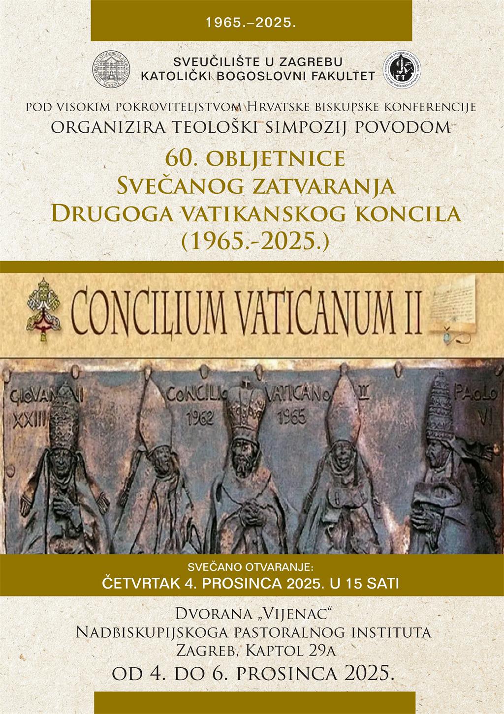 Katolički bogoslovni fakultet Sveučilišta u Zagrebu, pod visokim pokroviteljstvom Hrvatske biskupske konferencije, organizira Teološki simpozij povodom 60. obljetnice svečanog zatvaranja Drugoga vatikanskog koncila (1965. - 2025.).