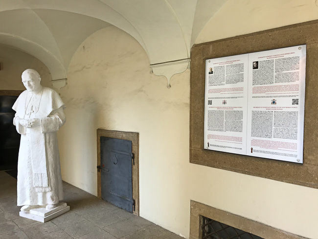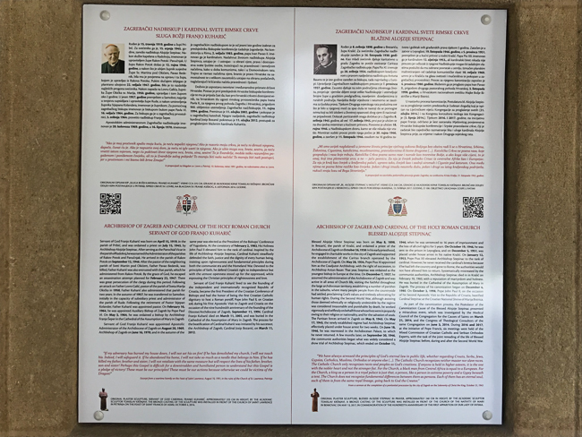 Uz kip kardinala Kuharića, u arkadama Nadbiskupskog dvora, postavljen je gipsani kip i podatci o bl. Alojziju Stepincu prigodom 85. obljetnice imenovanja zagrebačkim nadbiskupom koadjutorom s pravom nasljedstva (28. svibnja 1934.) te biskupskog ređenja u zagrebačkoj katedrali 24. lipnja 1934. Kip je djelo kipara Tomislava Kršnjavija, a brončani odljev je postavljen ispred crkve Rođenja Blažene Djevice Marije u Benkovcu, u svibnju 2017. godine.