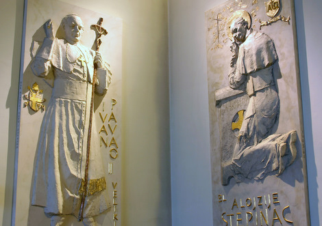 Reljef, rad akademskog kipara Ivana Ivoša, na poticaj župnika župe o. Andrzeja Wośka SCJ, darivali su mladi odmah nakon Papine smrti 2005. godine, te ga postavili u župnu crkvu, tik uz »najsjajniji lik Crkve u Hrvata«, bl. Alojzija Stepinca.