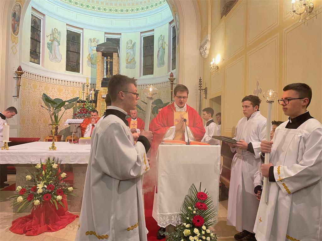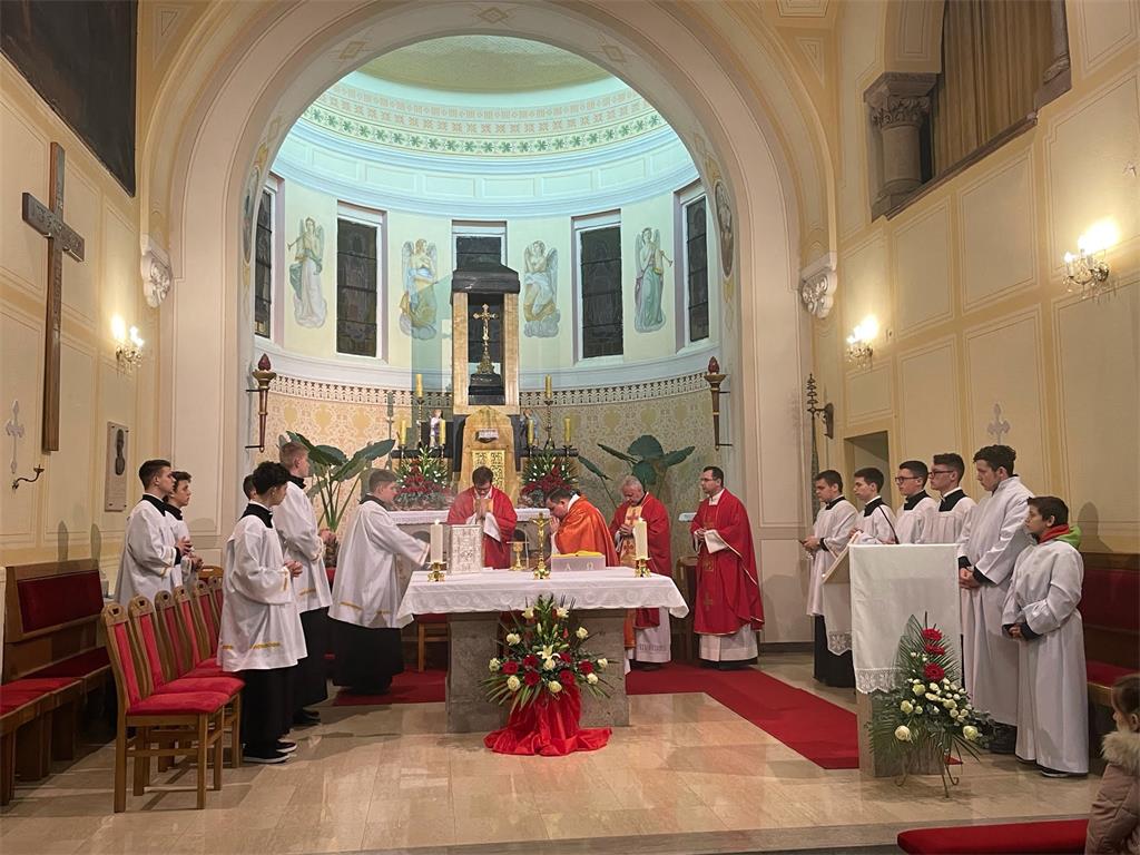 Na početku misnoga slavlja, preč. Pavlaković je podsjetio kako toga dana Crkva slavi spomendan svetoga Blaža, biskupa i mučenika. „Večeras nam ga Crkva predstavlja kao uzor revnog pastira i neustrašivog svjedoka vjere te nas poziva da zagledani u njegov život vidimo mnoštvo dodirnih točaka i s našim svetim blaženikom Alojzijem te da uočimo na koji smo način mi pozvani nasljedovati Krista te biti i ostati njegovi vjerovjesnici u ovome svijetu”.
