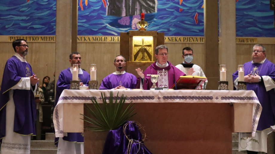 Osvrćući se na evanđeoski tekst o uzetome na kupalištu Bethazda (Iv 5, 1-3a.5-16), fra Ivan je naglasio da je voda život te da bez nje ne možemo. „Ne valja kad je nema, umrijet ćemo. A ne valja ni kada je ima previše. Zato Stvoritelj na početku odvaja vode od voda. One vode koje liječe, od onih koje potapaju. Baš kao što Bog u nama odvaja dobro od zla: Idi i ne griješi više! Mnogi su se utopili u vodama svoje nezasitnosti i pohlepe, kao ono kad su Egipćani precijenili svoje mogućnosti pa krenuli u potjeru za Izraelcima. Mnogima je voda donijela zdravlje, kao ono Elizeju“, rekao je propovjednik.