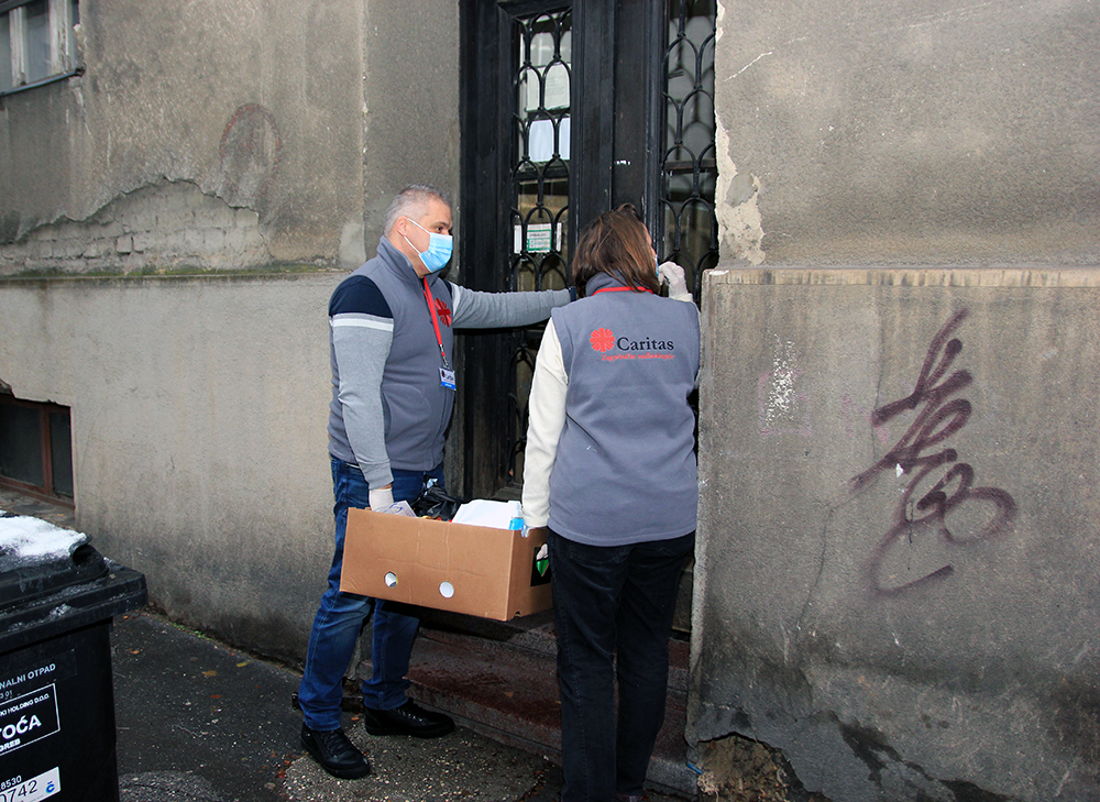 Kroz teška vrata velikog, tamnog haustora, Caritasovi zaposlenici dolaze pred skromnu ciglenu zgradu, derutne fasade. Zvone i čekaju pred ulazom ukrašenim zelenilom. »Živim od ovih dobrih ljudi koji pomažu sirotinji. Pozdravljam zaposlenike i volontere Caritasa gdje god bili! Jako su dragi i simpatični i pomažu sirotiji kojoj treba. Od srca im zahvaljujem!«, kaže uvijek nasmiješena gospođa Marija (80), nadovezujući se čestitkom: »Za Božić i Novu Godinu želim vam puno sreće i zdravlja i da imate manje posla, i da sirotinje bude manje!«