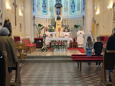 Po završetku predstavljanja knjige uslijedilo je svečano misno slavlje s nakanom za sve žive i pokojne sestre Služavke Malog Isusa koje su djelovale u Župi Krašić, napose za one koje su služile i živjele u blizini blaženog Alojzija Stepinca. U propovijedi biskup Mrzljak podsjetio je okupljene kako u početcima Crkve vjera nije rasla bez poteškoća i na njeno postupno rađanje među Isusovim učenicima, naglasivši kako je važno biti svjedok uskrsnuća, svjedok svega što je Isus govorio i činio. Pojasnio je važnost postavljanja pravih temelja vjere te kako „blaženoga Alojzija Stepinca koji je u suživotu sa župnikom Vranekovićem i sestrama Služavkama Malog Isusa i župljanima možemo promatrati kao istinskog svjedoka vjere.“ Osvrnuvši se na djelovanje sestara Služavki Malog Isusa u Krašiću posvjedočio je kako su one bile svjedokinje po onome što su činile za samog blaženog Stepinca i sve druge članove župne zajednice. U propovijedi biskup je skrenuo pozornost na proslavu Majčinog dana te kako tu majčinsku ljubav, osim na majke možemo proširiti i na sve redovnice koje žive majčinsku karizmu koja je itekako potrebna u ovom vremenu.