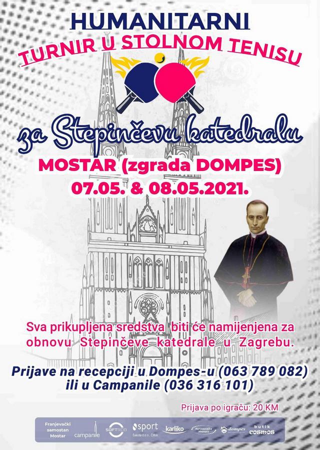 Ravnatelj mostarskog DOMPES-a (Doma kruha i Duha) fra Iko Skoko u izjavi za HKR i IKA-u najavio je stolnoteniski turnir koji će se održati 7. i 8. svibnja u sportskoj dvorani DOMPES-a, a sav prihod bit će uplaćen u Fond za obnovu zagrebačke katedrale.