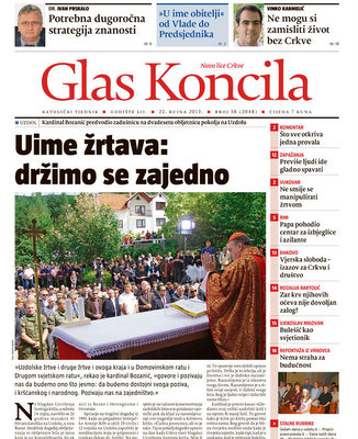 "Uime žrtava: držimo se zajedno", glavni je naslov 38. broja Glasa Koncila s nadnevkom nedjelje 22. rujna, posvećenog zadušnici na dvadesetu obljetnicu masakra 41 Hrvata katolika na Uzdolu, u srcu Rame. Donose se naglasci iz propovijedi zagrebačkoga nadbiskupa kardinala Josipa Bozanića.