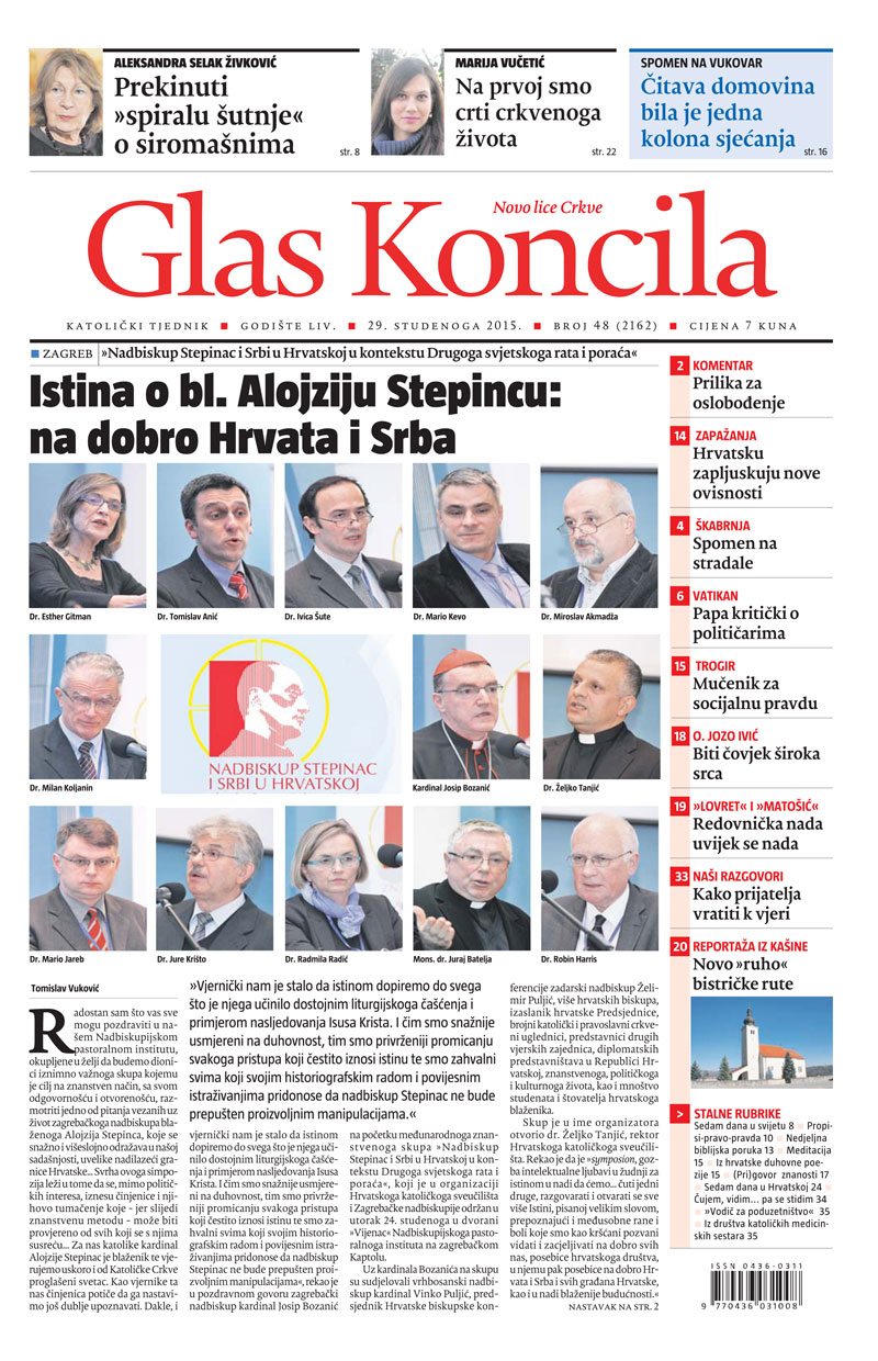 »Istina o bl. Alojziju Stepincu: na dobro Hrvata i Srba«, naslovna je tema novog broja Glasa Koncila, s nadnevkom 29. studenoga, posvećena međunarodnom znanstvenom skupu »Nadbiskup Stepinac i Srbi u Hrvatskoj u kontekstu Drugoga svjetskoga rata i poraća«, održanom 24. studenoga u Zagrebu.