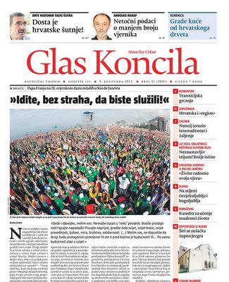 Novi Glas Koncila s nadnevkom od nedjelje 4. kolovoza donosi opsežan prilog o Papinu putovanju u Brazil gdje se na Svjetskome susretu mladih na misi okupilo više od tri milijuna vjernika. U prilogu je i izvješće o sudjelovanju hrvatskih vjernika na Svjetskome danu mladih u Rio de Janeiru predvođenih biskupom Mijom Gorskim.